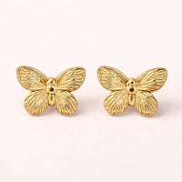 Delicate, charming, and effortlessly elegant — these Anti-Tarnish Gold Butterfly Stud Earrings are designed to add a graceful touch to your everyday style. Featuring a beautifully textured butterfly motif with fine sculpted detailing, the design captures light effortlessly, creating a soft yet radiant golden glow.