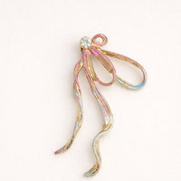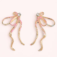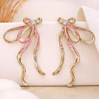 Make a graceful statement with these Antique Ribbon Bow Drop Earrings. Featuring a delicate bow motif with flowing ribbon-like strands, these earrings are enhanced with subtle multicolor enamel accents and a sparkling stone at the center.