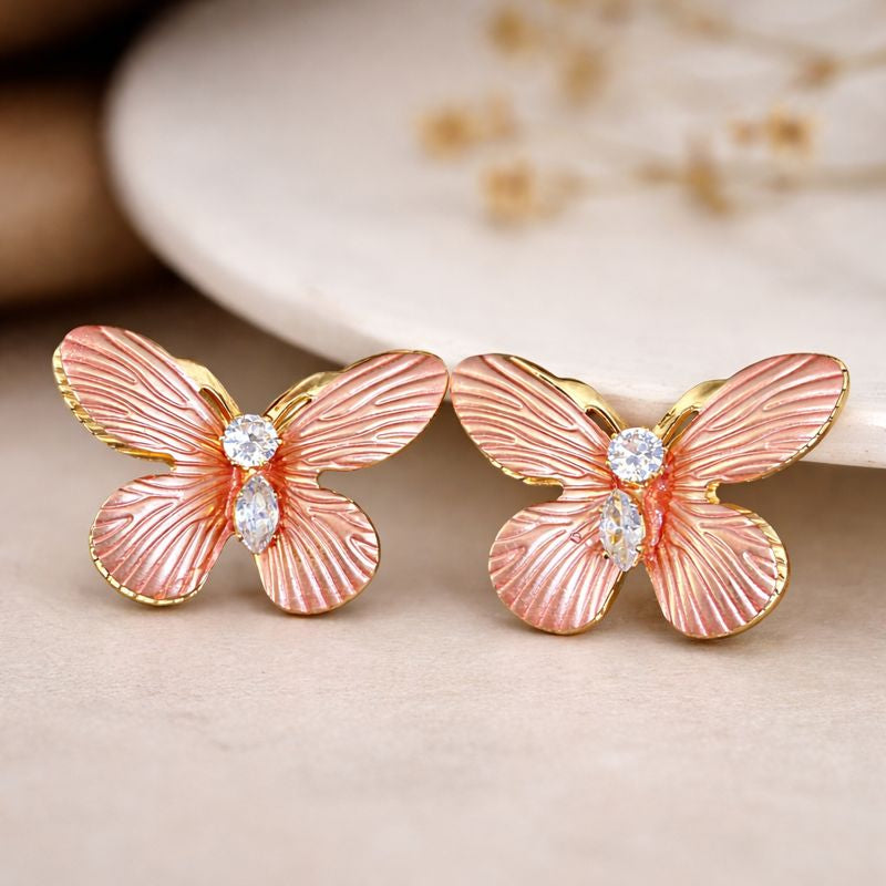 Blush Butterfly Anti-Tarnish Stud Earrings