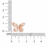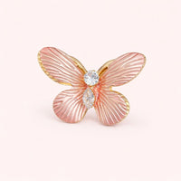 Design: Butterfly silhouette with blush-pink enamel and crystal accents