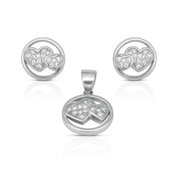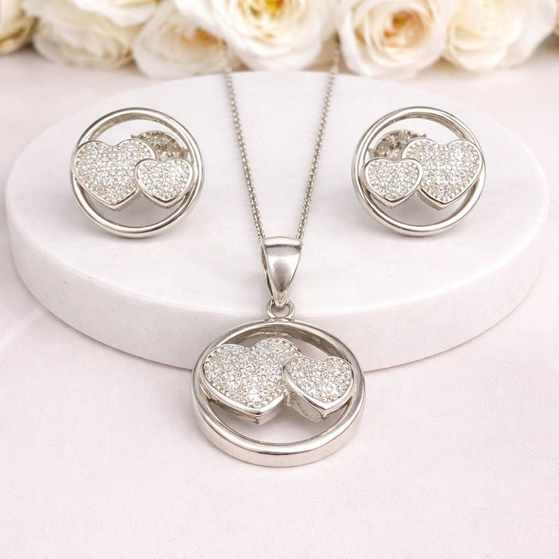 Double Heart Circle Silver Pendant Set