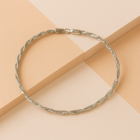 Effortless sophistication meets everyday luxury. This sleek bracelet features a finely twisted herringbone chain that catches and reflects light beautifully, creating a fluid, mirror-like shimmer with every movement. Crafted in polished rhodium-plated 925 sterling silver, its minimalist yet striking design makes it perfect for stacking with other bracelets or wearing solo as a statement piece.