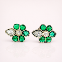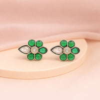 Emerald Bloom Silver Floral Stud Earrings