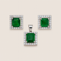 Emerald Square Halo Silver Pendant Set