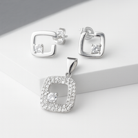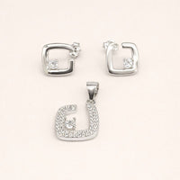 Geometric Square Silver Pendant Set