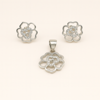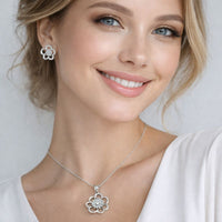 Openwork Floral Silver Pendant Set