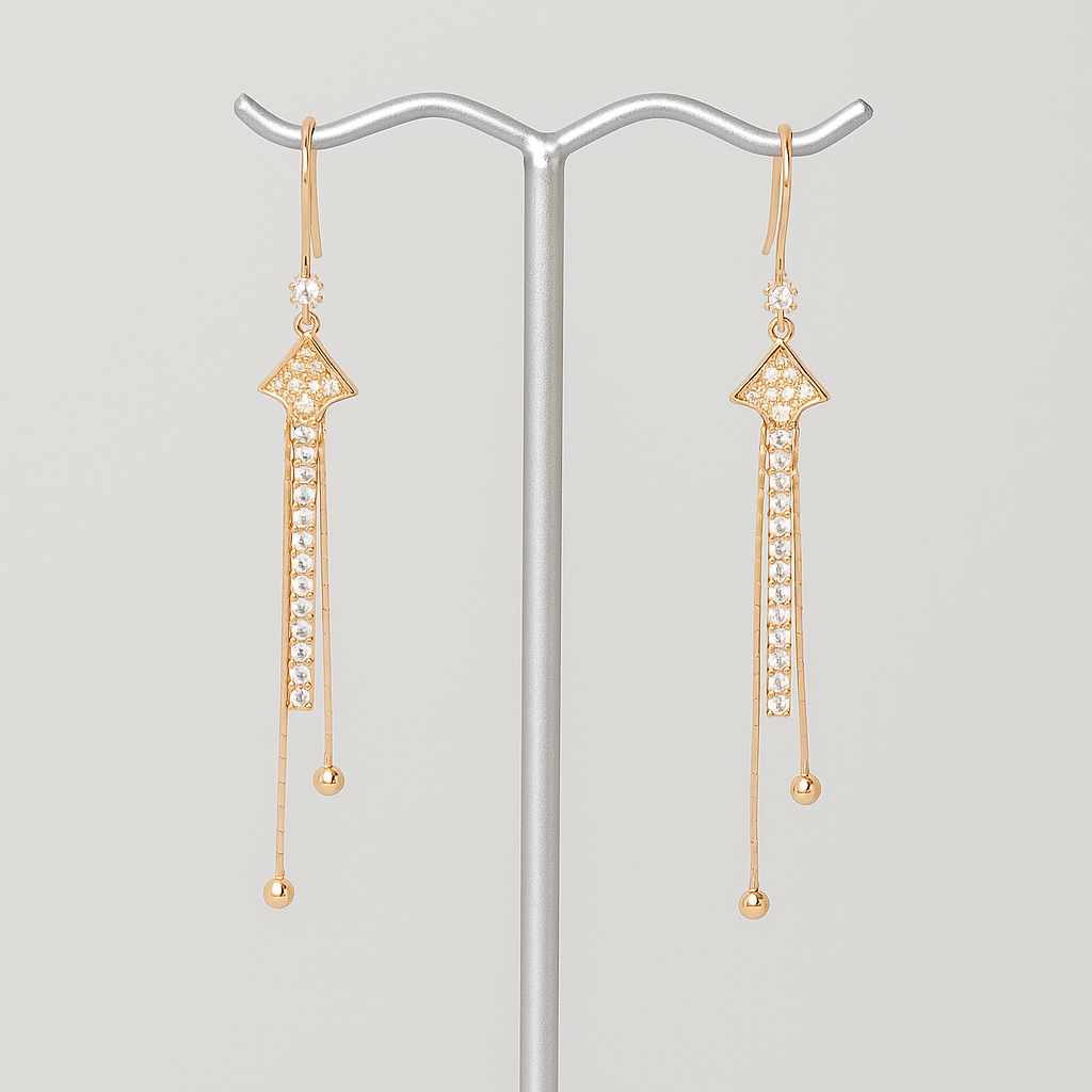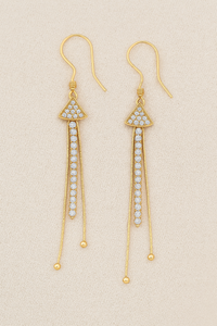 Bold yet refined, our Rose Gold-Plated Silver Long Arrow Dangle Earrings are designed to make a sleek, contemporary statement. A sparkling inverted pavé triangle anchors the design, flowing into three elegant chain tassels that sway gracefully with every step — creating light-catching brilliance and effortless drama.