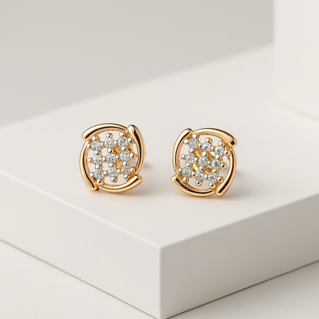 Elegant Rose-Gold Framed Silver Stud Earrings