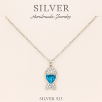 Bring a playful touch of the ocean to your everyday style. This adorable bubble fish pendant features a sparkling pavé-encrusted head and tail fins that cradle a vibrant blue heart-cut crystal body, complete with a tiny black crystal eye for personality. Crafted in polished rhodium-plated 925 sterling silver, it’s a whimsical yet sophisticated piece—perfect for casual days, beach lovers, or gifting to someone who adores the sea.