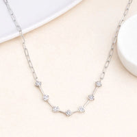 Silver Diamond-Style Station Necklace