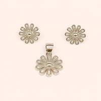 Bright, cheerful, and full of sparkle — our Sparkling Daisy Silver Pendant Set beautifully captures a sunflower in full bloom. Ten delicate petals shimmer with brilliant pavé cubic zirconia, surrounding a polished gold bead center that adds warmth and radiant dimension.