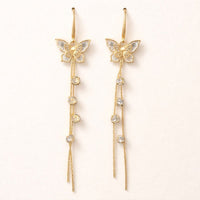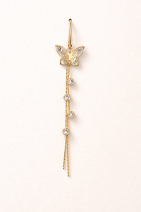Add a touch of antique elegance to your jewellery collection with these Antique Butterfly Drop Earrings. Crafted with a delicate gold-tone finish, each earring features a beautifully detailed butterfly motif accented with shimmering stones and graceful dangling strands.