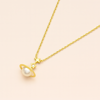 Celestial Pearl Planet Pendant – 925 Silver with Gold Finish
