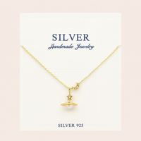 Add a soft cosmic glow to your everyday look with this beautifully crafted Celestial Pearl Planet Pendant. Designed in premium 925 sterling silver and finished with a radiant gold polish, this piece captures timeless beauty with a modern celestial twist.