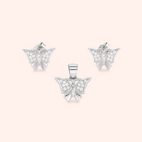 Celebrate transformation and grace with our Elegant Silver Butterfly Pendant Set. This enchanting matching set features petite butterfly designs with wings fully encrusted in hand-set micro-pavé cubic zirconia that flutter with every movement. Crafted in polished 925 sterling silver with thick rhodium plating, it’s the perfect blend of whimsy, elegance, and everyday sparkle—ideal for yourself or as a thoughtful gift for someone ready to spread their wings.