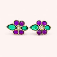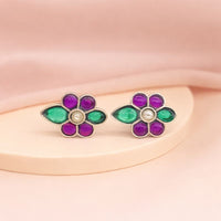 Add vibrant charm to your jewellery collection with these Floral Multicolor 925 Sterling Silver Stud Earrings. Designed in a delicate flower motif, these elegant studs feature a beautiful blend of green and purple stones, highlighted with a subtle pearl-like center detail.
