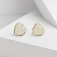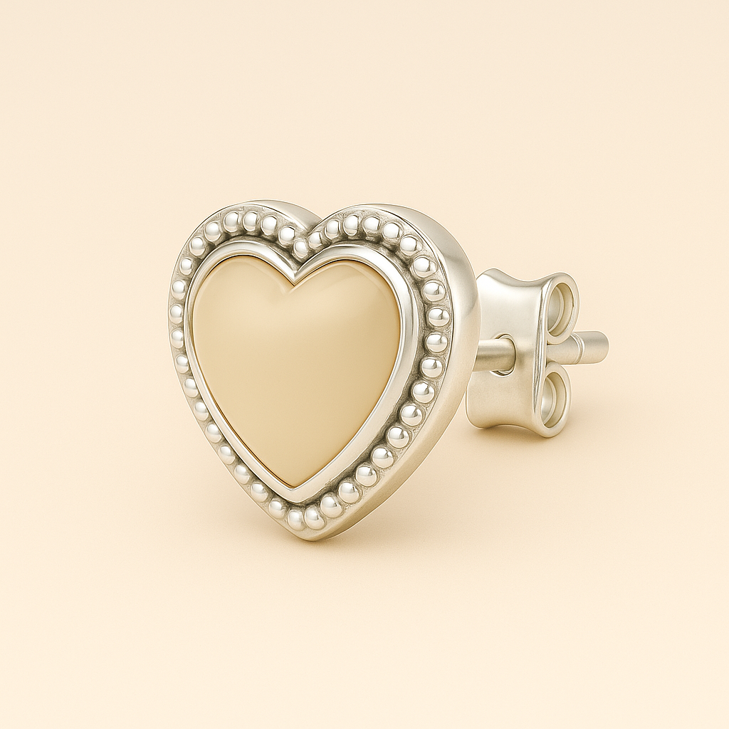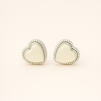 Delicate, charming, and timeless — our Heart-Shaped Opal Finish Silver Stud Earrings bring a soft, feminine elegance to any look. Featuring glossy cream enamel centers framed by a finely beaded silver border, these earrings offer a subtle vintage-inspired charm with modern wearability. Crafted in polished rhodium-plated 925 sterling silver, they’re perfect for everyday romance, bridal sets, or layering with your favorite delicate studs.