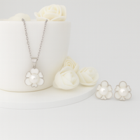 The Ivory Pearl Blossom 925 Sterling Silver Pendant Set is a graceful expression of minimal sophistication. At its heart lies a luminous ivory pearl, beautifully framed within a delicate floral design crafted with soft white enamel petals.
