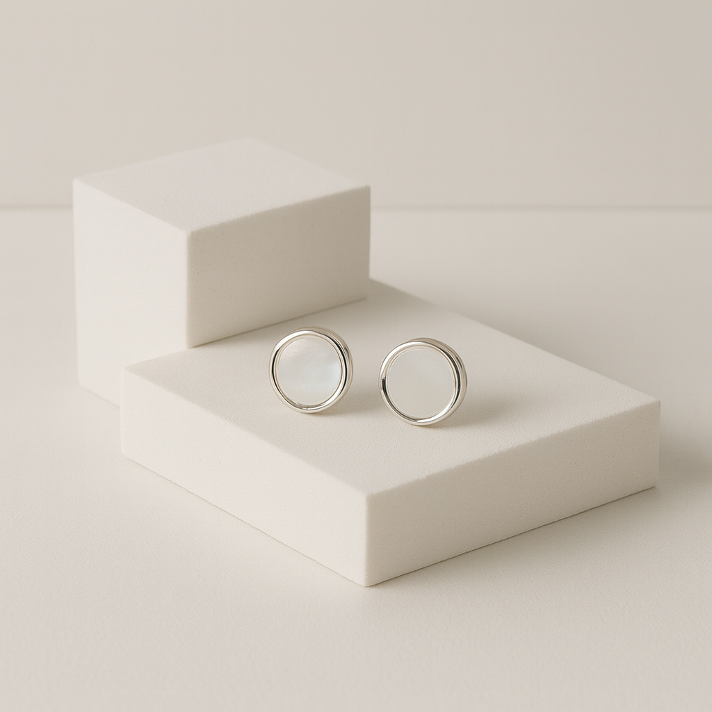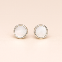 Minimal Round Mother-of-Pearl Silver Stud Earrings