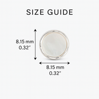 Clean, timeless, and effortlessly chic. These classic round studs showcase a perfectly smooth disc of genuine white mother-of-pearl, set in a sleek, high-polish rhodium-plated 925 sterling silver bezel.