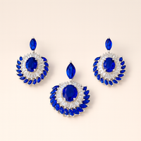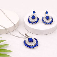 Royal Blue Halo Silver Pendant Set