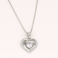 Capture the magic of love in motion. This elegant pendant features a 4 mm round-cut cubic zirconia that magically “dances” inside a sparkling pavé-encrusted open heart frame. Crafted in polished rhodium-plated 925 sterling silver, the floating stone setting creates an endless play of light—perfect as a symbol of everlasting love or your new everyday sparkle.
