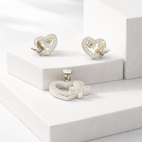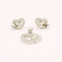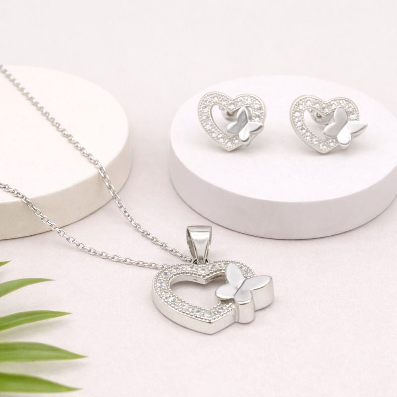 Silver Heart Butterfly Pendant Set