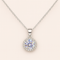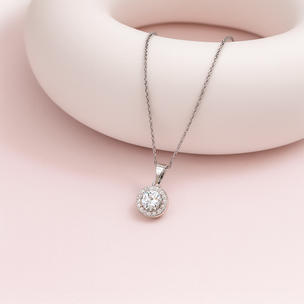 Silver Round zircon Halo Pendant