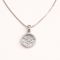 Embrace the beauty of winter elegance with the Snowflake Circle 925 Sterling Silver Chain Pendant. Featuring a finely detailed snowflake motif enclosed within a sparkling crystal-studded circular frame, this pendant radiates refined charm and subtle brilliance.