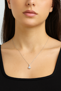 Refined, radiant, and effortlessly elegant — our Sparkling Fan-Shaped Silver Pendant Necklace captures the essence of modern luxury with old-world charm. Featuring a graceful open fan motif fully pavé-encrusted with shimmering stones and crowned with a single brilliant accent, this necklace brings miniature glamour to your everyday style.